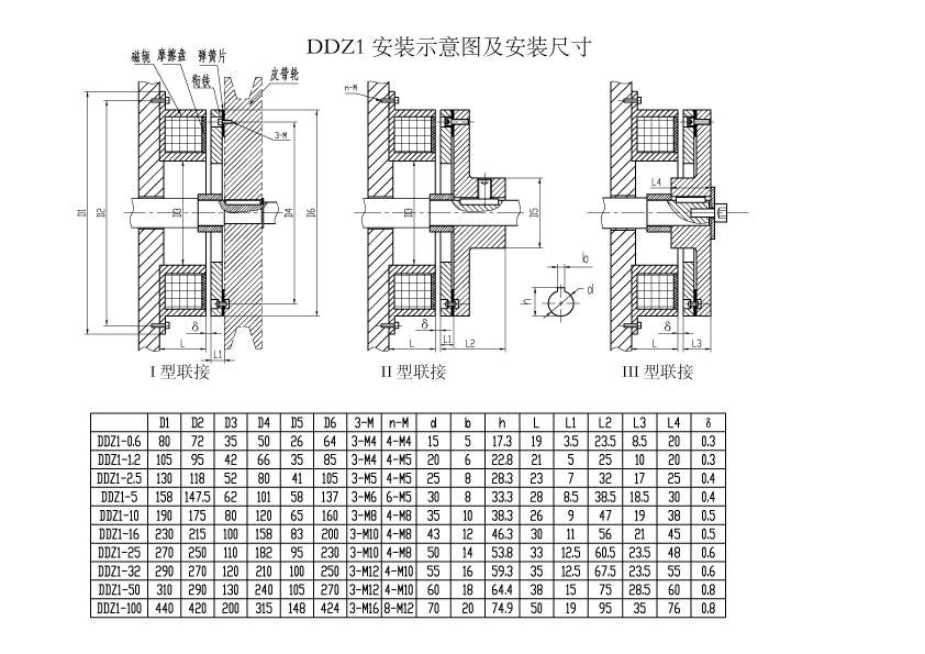 二、 該制動(dòng)器屬干式,必須在無油狀態(tài)下工作;與制動(dòng)器配合的軸孔與軸的精度為H8/h7;制動(dòng)器主、從部 分需固定,不得有軸向竄動(dòng),應(yīng)保證同軸度及工作氣隙δ。